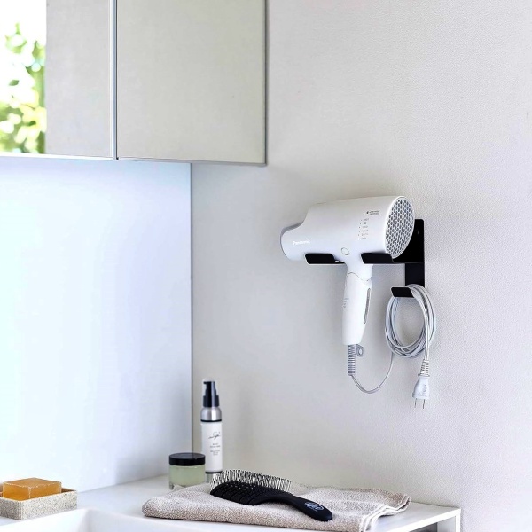 壁面の材質によっては取り付けが難しいかもしれませんが、ドライヤーの使用時はすぐ手に取れて便利だと思います。
